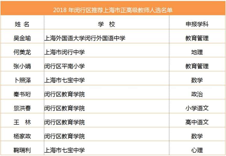2018年闵行区推荐上海市正高级教师人选名单,已经确定。