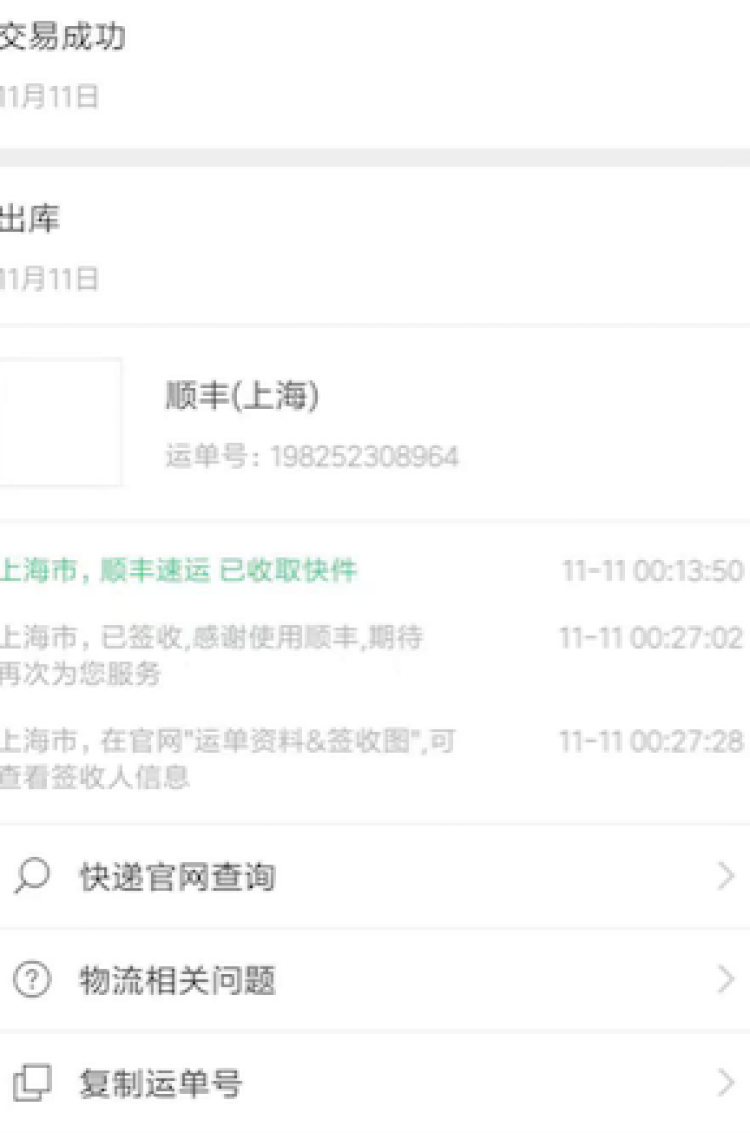 到了零点30分左右,顺丰快递小哥竟然出现在了田女士的家门口,“我就这样在一种完全惊讶的状态下,签收了我的双十一第一件商品。前后不超过一个小时。”