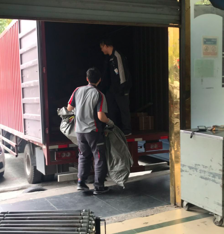 在顺丰的一处网点,周到君看到,一麻袋一麻袋的快递正由快递小哥从大卡车上卸下,大件先用机器进行扫描,再通过传送带分配到每个快递小哥的手上。