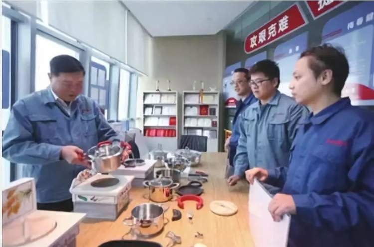 公司从领导到技术人员精诚合作,夜以继日,共同投身研发工作,从选材到产品功能论证,做到精益求精。锅壁做薄了,容易粘底,到底多少厚度才合适呢?2.0、2.3、2.8、3.0,直至4.0毫米锅壁厚度的模具做出的锅,才让技术团队满意。稻香锅巴锅的底部做成半球型,并非只为美观。“底部做成半球型,可以让底部的热量更好地传到到四壁,煮出的米饭才会有土灶的饭香味。”黄勇介绍,半球型底相比平底拉制难度大,模具需要不断修正,报废的试验品不计其数。
