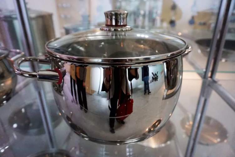 从外观上看,稻香锅巴锅不同于普通锅子所采用的平底设计,而是使用半球型底;整个锅子一体制造,没有任何接缝,在不锈钢的高光下显得十分漂亮。一个看似不大的锅,拿在手里却分量十足。黄勇介绍,稻香锅巴锅采用双层不锈钢夹铝板制成,锅壁厚度达4毫米,是普通不锈钢锅锅壁厚度的6倍。“即使在公司过往生产的上亿只锅具中,锅壁厚度也鲜有超过2.8毫米的,稻香锅巴锅开启了一个新系列。”