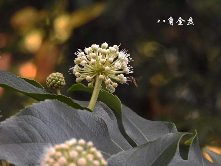 八角金盘虽然叫“八角”,但是认真数起来却往往是七个或九个角。看来命名人使用的大约是平均数了。最近是八角金盘花期伊始,陆陆续续绽放的八角金盘没有引来蝴蝶,往往引来的却是苍蝇。在这张图片里,花的右面的那一只虽然看起来像蜜蜂,但是却是一只扮成蜜蜂的苍蝇:食蚜蝇。