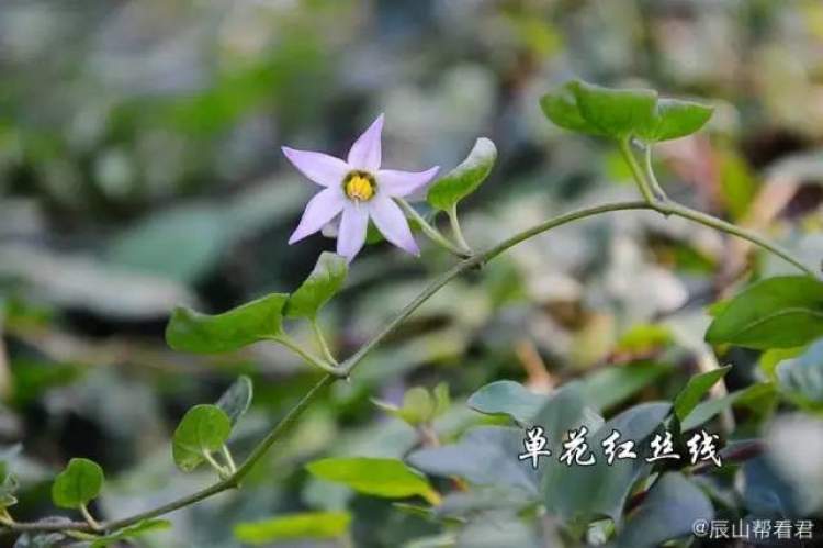 花单朵在一个茎节上孤零零开放的红丝线属(茄科)植物。