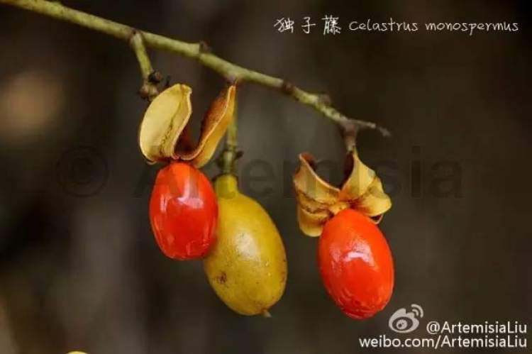 独子藤为原产我国华南地区的一种卫矛科常绿藤本,其蒴果仅含一枚种子,故名。
