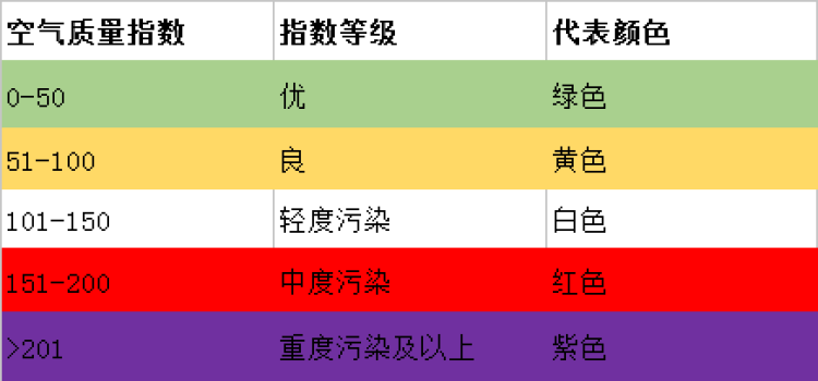 使用说明:以不同灯光颜色展示每日PM2.5空气质量指数。以天气预报色值为参考,六色代表6种PM2.5区间数值。