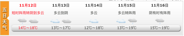 白天气温将小幅回落:最高气温18℃左右,最低气温14℃上下。