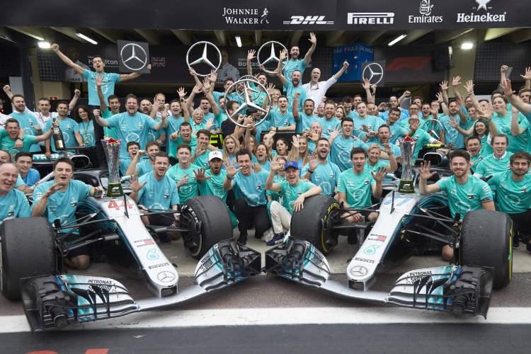 梅赛德斯车队工作人员欢庆五连冠