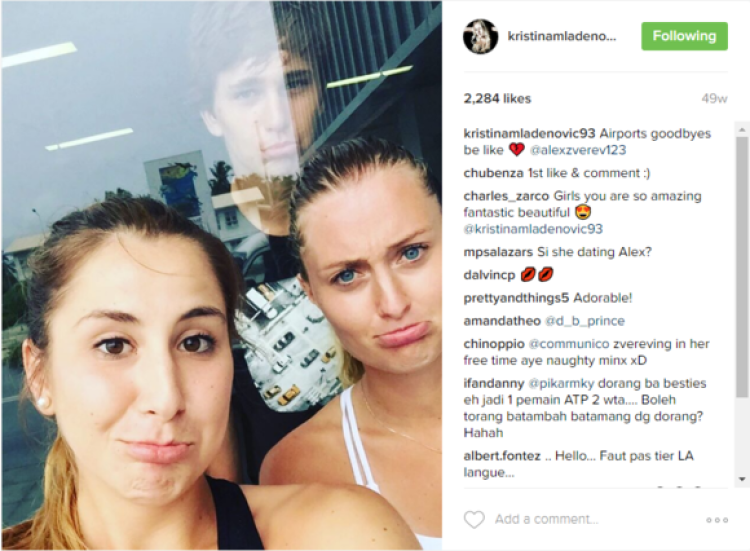 也是在2013年,同为16岁花季的本西奇和兹维列夫双双赢得了青少年世界锦标赛的冠军,通过这次比赛他俩认识了,并从2015年开始就传起绯闻。比如2016年10月,提前结束赛季的兹维列夫说他要跟姑娘们去度假了,“姑娘们”就是本西奇和后来做了蒂姆女朋友的梅拉德诺维奇。