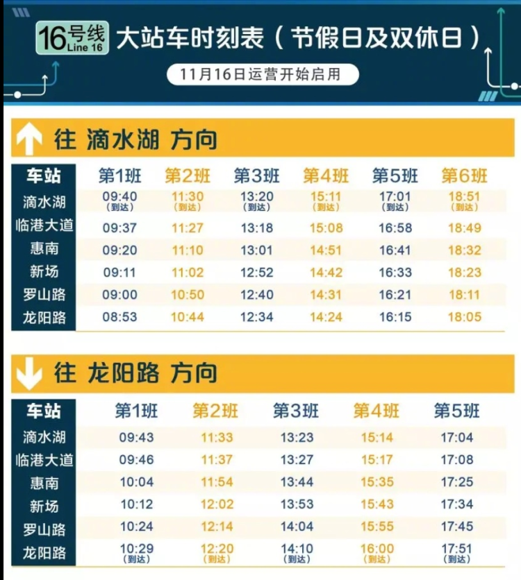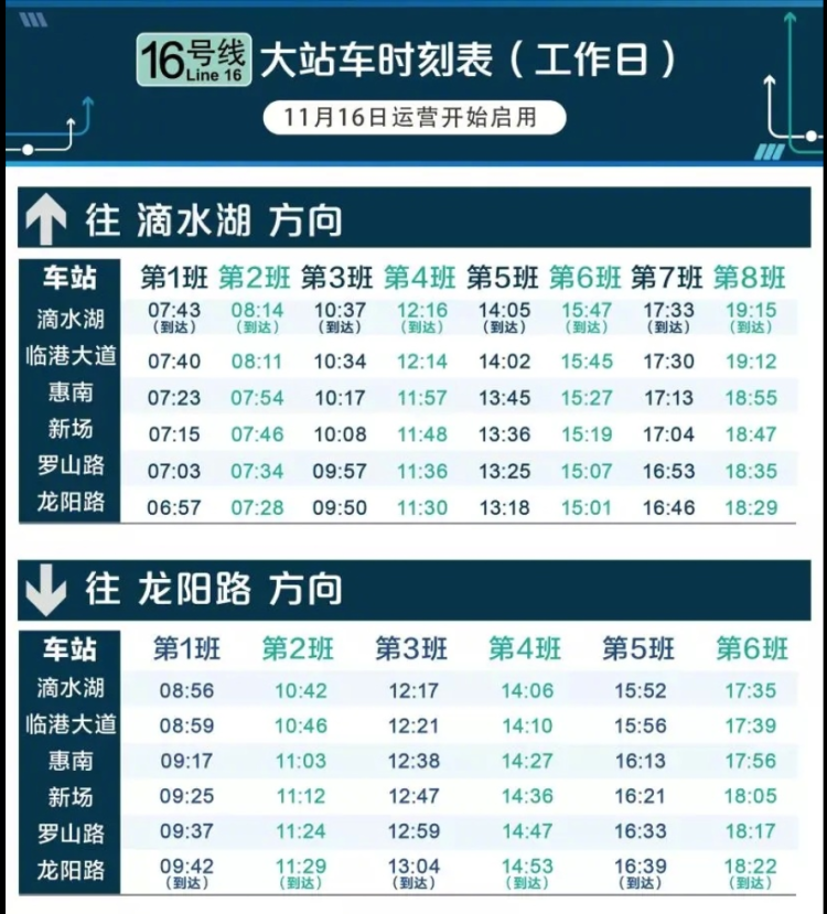 本周五起16号线所有大站车均停靠临港大道站 2018-11-12 为了进一步缓解工作日时段临港大道站大客流情况,11月16日起,16号线再次启用新图,届时工作日时段,16号线也将增加临港大道站为大站车停靠点。即:16号线工作日及双休日、节假日,大站车均停靠临港大道站。 来源:周到上海 作者:周到君 赞一个 (0)