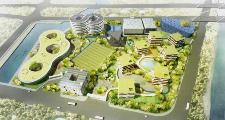 东面2千米即为青浦老城中心,东、南、北面均已建成东渡、大发融悦等多个高档住宅小区。东侧有天然河道,与地标性极强的西大盈港双桥相邻,毗邻吾悦广场商业区,距淀山湖仅10千米,环境优美,交通便利。同时,围绕基地西面的轨交青浦新城站。