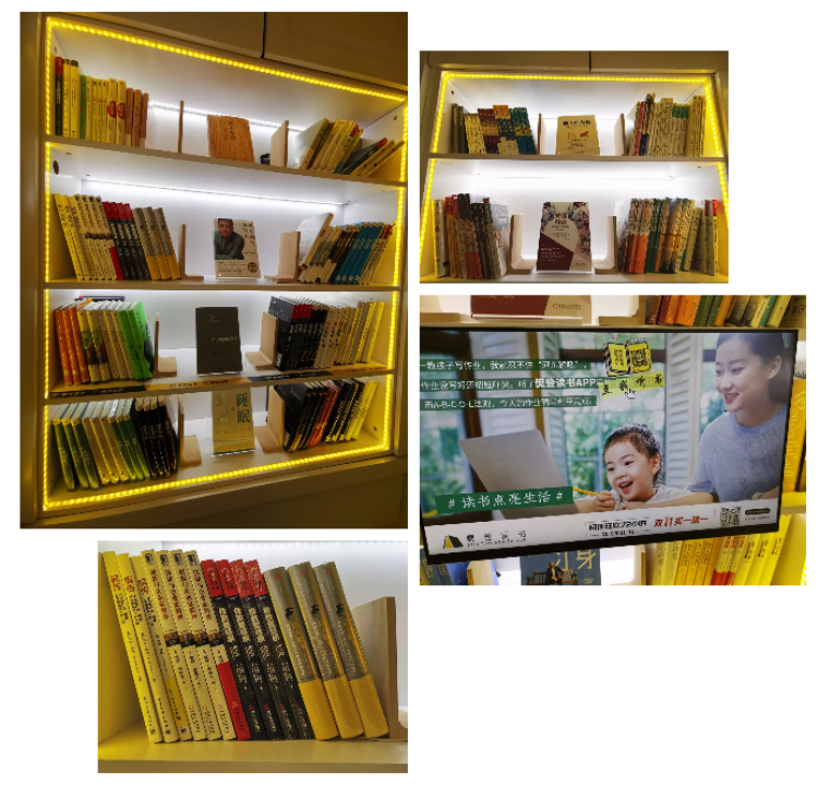 推开透明玻璃门进入后,你就可以一个人在里面慢慢挑选了。古仔粗略估计了一下,里面估摸有近百本书籍,包括文学作品、小说、儿童绘本、传记等,能满足不同年龄人的阅读需求。里面还有一个显示屏,扫描二维码还可以选择听书。