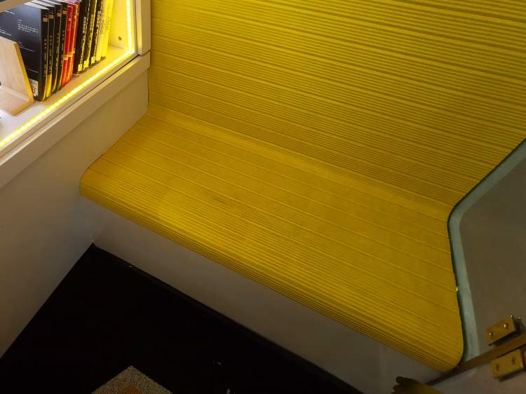 贴心的是,迷你无人书店设置了软皮的舒适座椅,可以坐下来慢慢挑选阅读。全封闭的空间里,完全不用担心会被人打扰。