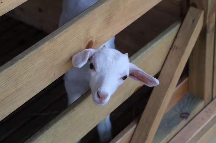 或许是看见了我们眼中的疑惑,赖岳军指着小羊解释道:“给小羊耳朵涂颜色是为了分房间方便,如果放错了,母羊就不喂小羊了,而且会打架。你别看它们现在这样小,一年左右就长这么大了。”赖岳军摸了摸小羊脑袋,用了一个夸张的手势比划给我们看。
