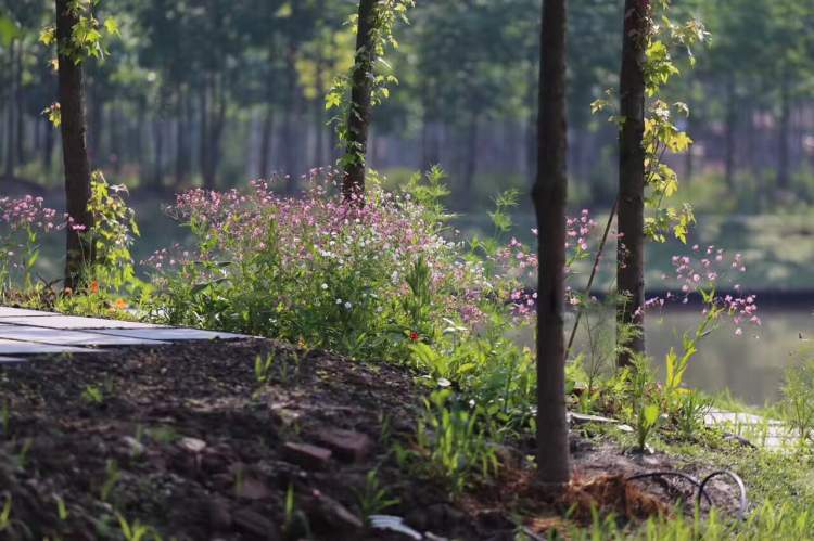 沿着散步栈道一路向前,在秋日的高阳里仿佛误入了一幅油画,而大自然正是最出色的调色好手。“这边一片都是日本枫,比较低,但是造型好,那里高高的一片是北美枫……”说起这里的一草一木,赖岳军如数家珍。