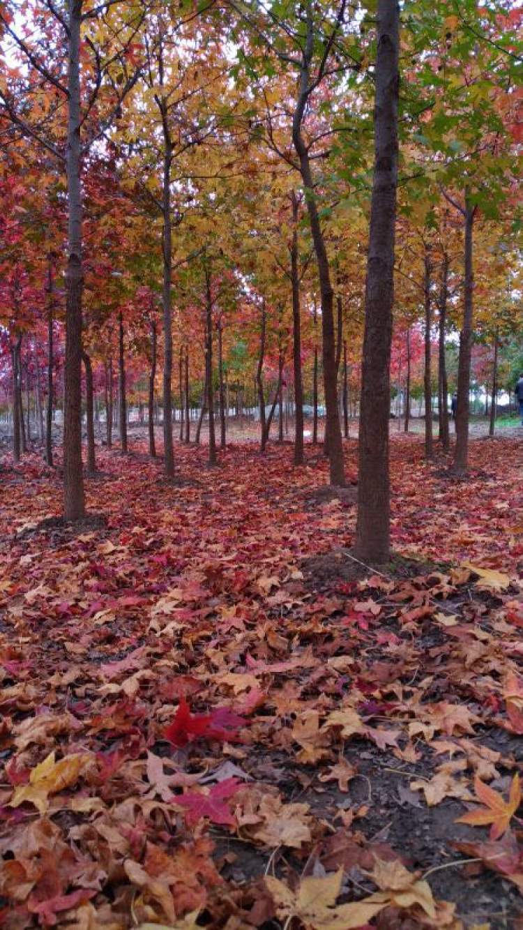 高耸的北美枫与水杉,到了深秋时节渐变成红,阳光下风吹叶动,层林浸染,煞是明丽。