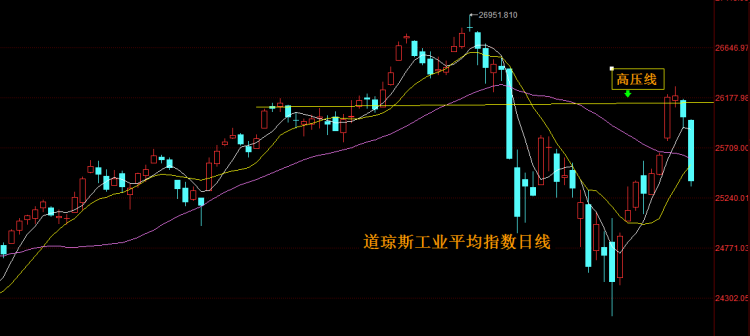 从技术面观察,道指隔夜一根大黑棒,导致一剑跌窜3线,即股指跌破5日、10日、30日平均线,短线走势难看,在加上三大股指都是“高压线”在上(见图1)