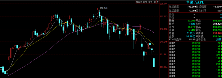 2.近来,美股个股的焦点,越来越集中到苹果AAPL身上(见图2),隔夜该股又大跌,跌幅达到5.51%,科技行业5巨头FAANG股票股价跌幅均超过2%。