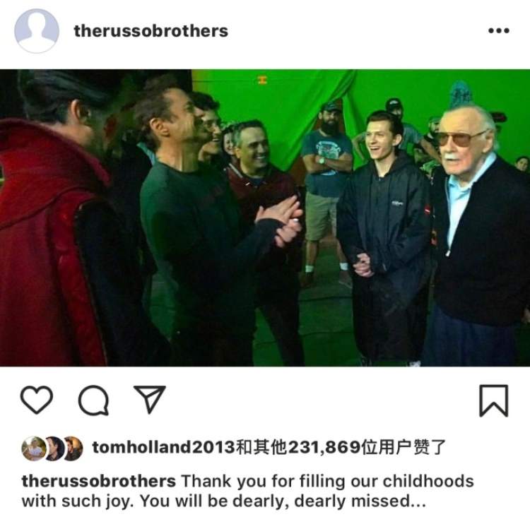 “蜘蛛侠”汤姆·霍兰德:“没有人比我更感激他。“漫威之父”已让很多人收获无比的快乐。多么伟大的一生和成就啊。安息吧,斯坦。”