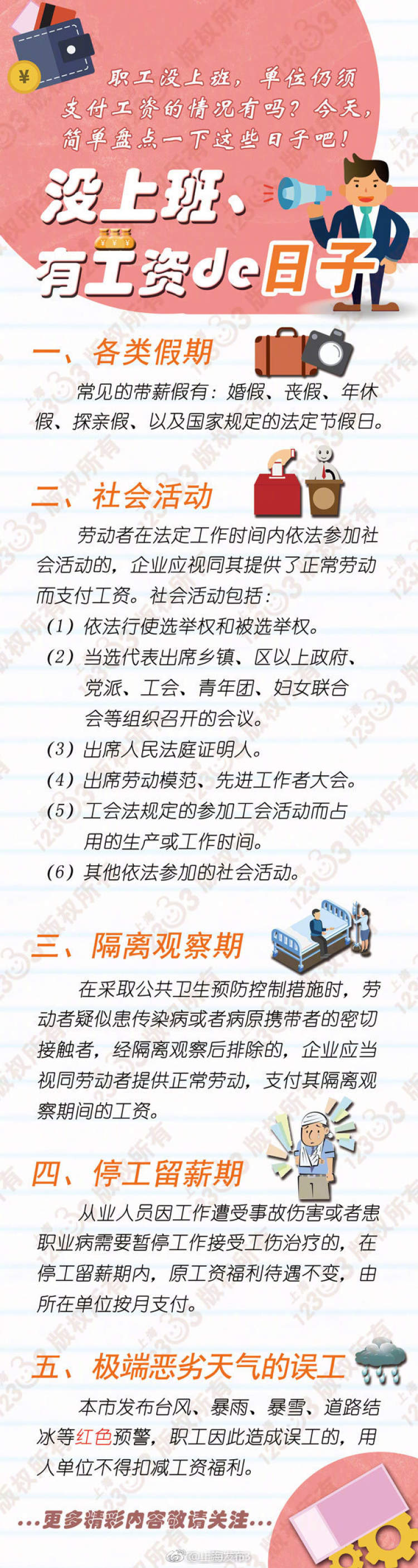 什么日子你不上班,单位照发工资?告诉你! 周到君 2018-11-13 来源:周到新闻 职工没上班,单位仍须支付工资的情况有吗?还真有这回事,快擦亮眼睛瞧仔细了!常见的带薪假期有:婚假、丧假、年休假、探亲假……今天,就一起来盘点一下这些日子吧↓ 来源:周到上海 作者:周到君 赞一个 (0)