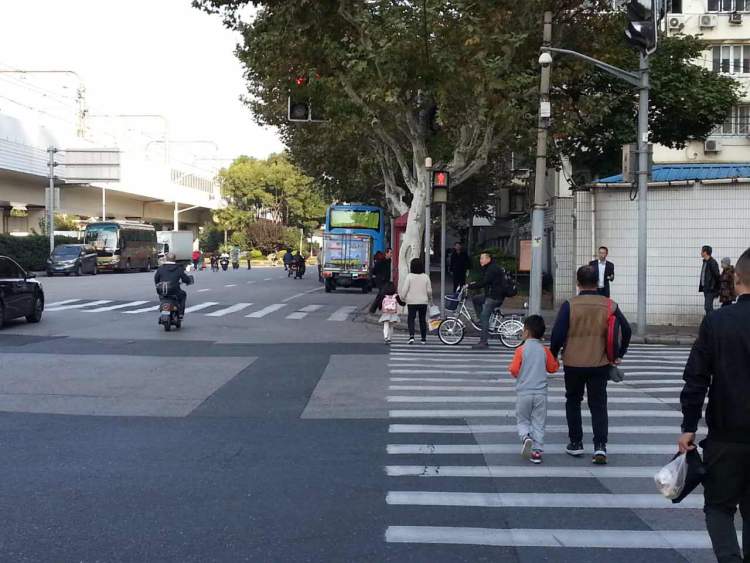 记者接着来到徐虹路、古宜路口,这是两条小马路,交叉口来来往往的车辆表面上看较为稀疏,貌似“风平浪静”,也许正因为如此,随意闯红灯的镜头频频映入眼帘,其中一位女士边闯红灯还边看手机,且走在斑马线外面。其实,距离这里的不远处就是“交通违法处理点”,小汽车仍然有出现;附近有两幢18层的居民楼,穿梭于周边马路的快递及送餐车依然较为频繁。“我清楚记得几个月前,一位家长领着孩子在这里过马路时‘闯红灯’,手里没有拉住小男孩,小男孩蹦蹦跳跳过马路,被一辆电瓶车碰擦,虽然没有大碍,却起了一场争吵,围观者很多,大家都指责这位家长闯红灯不对。”一位环卫保洁员对记者说。
