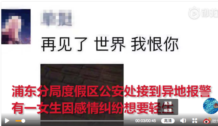 “再见了,世界,我恨你。”11月11日凌晨5时许,外地某大学学生小雪(化名)在朋友圈发布了一条定位于迪士尼度假区心愿湖公园西门的文字,把她的老师吓得直接向上海警方报案。