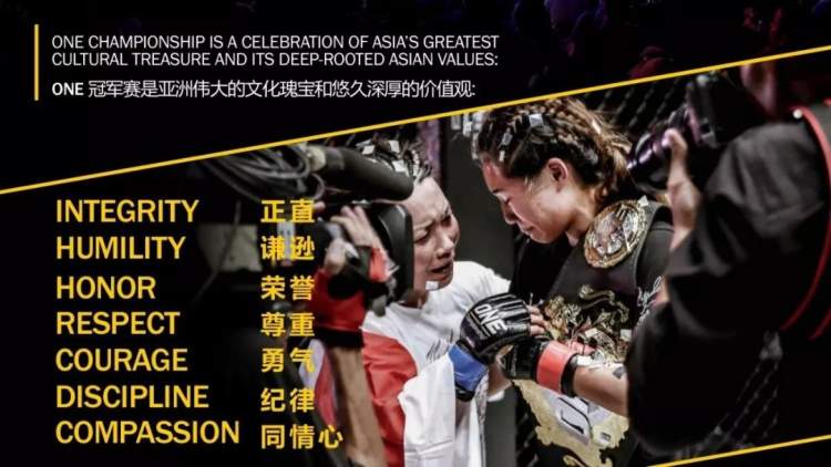 但哈佛MBA出身的ONE冠军赛CEO查特里·西尤堂志向绝不止做“亚洲最大”,他在“全球格斗峰会”上激情澎湃地历数ONE冠军赛的价值观:正直、谦逊、荣誉、尊重、勇气、纪律、同情心,似乎把一切代表阳刚正能量的词都从字典里挑了出来。