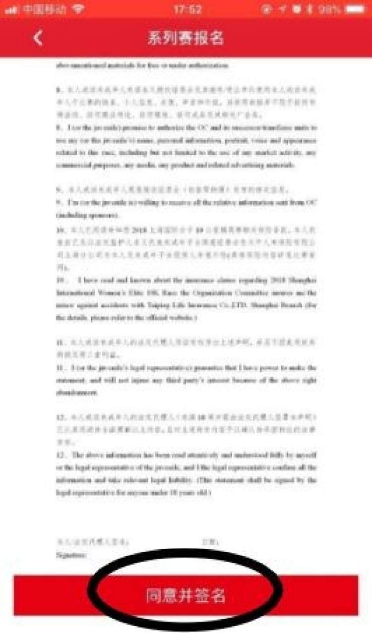 第七步:详细阅读《参赛选手声明》,并点击“同意并签名”
