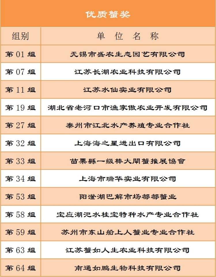 最终,由上海市瑞华实业有限公司选送的体重409.9克的雄蟹摘得“蟹王”称号,“蟹后”桂冠由江苏常州市金坛区永强水产有限公司选送,体重349.5克。