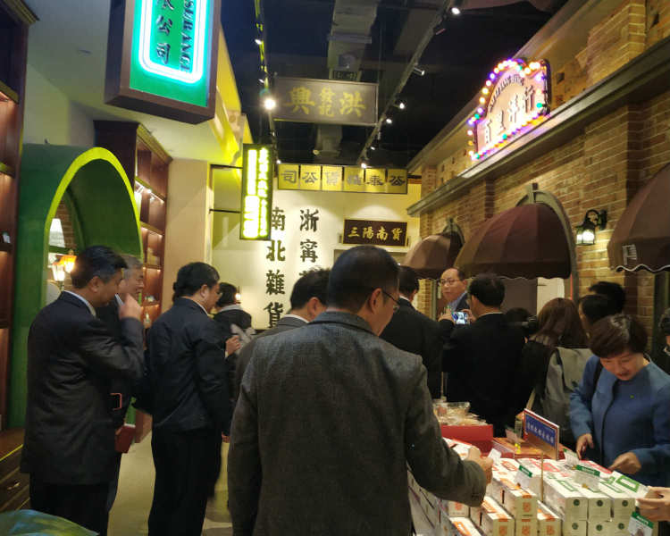 参观完连廊之后,代表们又来到A馆7楼,参观第一百货商业中心新近打造的“100里海派伴手礼体验店”,这是上海首家以海派文化为体验场景的伴手礼商店。
