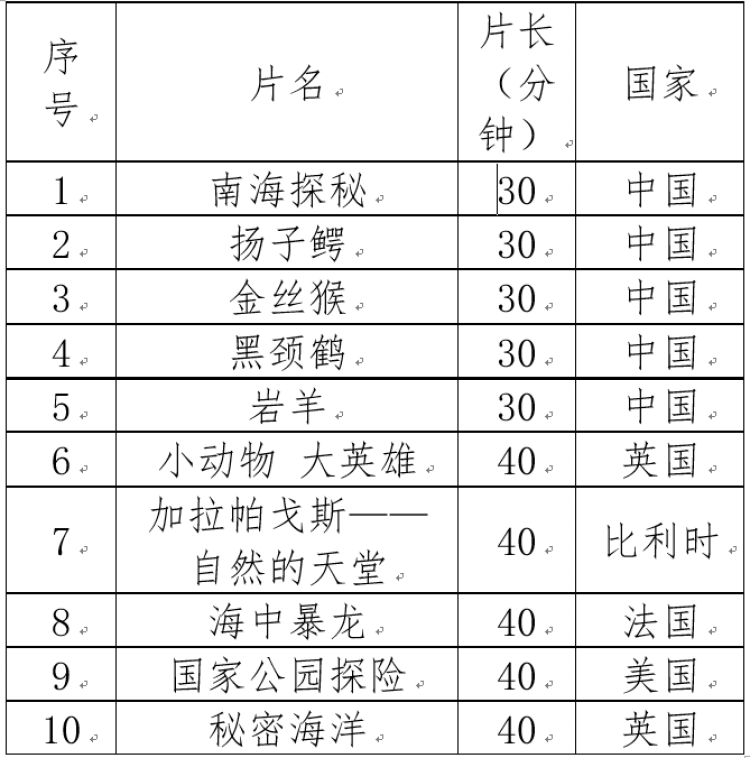除了各场馆放映的精彩大片,活动期间,组委会还将向上海100多个社区赠送来自中国、法国、英国、美国等国家的10部自然主题优秀科普公益影片(纪录片),面向社会公众免费播映,让公众不出远门就能“环游世界”。其中,《南海探秘》、《扬子鳄》、《金丝猴》、《海中暴龙》等知名纪录片均在列: