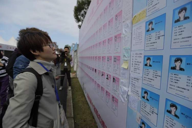 公园里最吸引目光的就是道路边巨大的寻缘墙,墙上印着不同的男女青年情况,身高、职业、户籍、月薪,都很清晰。一些自信的男女生也会大大方方地贴上自己的头像。大数据匹配,吸引了不少人驻足研究。有意思的是,有些没有赶上事先报名的,现场直接贴上信息做补充。