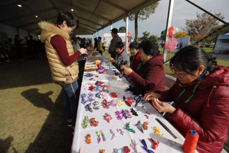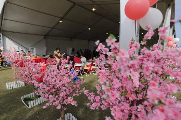 现场静态交流变成有趣互动,各种小游戏拉近参与者的距离。在“桃花朵朵”的松江专区,可以参与甜蜜饭卷、快乐弹珠等各种小游戏,也可以驻足观看盘扣、面塑等非遗和“乡村女创客”的农副产品一级文创特色产品展示松江的魅力。