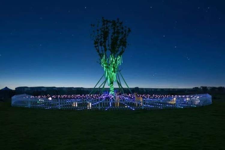 达人村的夜色,也让人不忍离去。夜晚上演的乡村夜秀,用星星点点的灯光汇聚成一幅幅精彩的画卷,草原灯光秀、黄金稻田、鲤鱼跳龙门、荧光步道、达人水秀等景观构成了宁波独一无二的乡村夜景,为游客带来乡村田园夜景的视觉享受,也让宁波江北的夜晚添上一丝温暖。