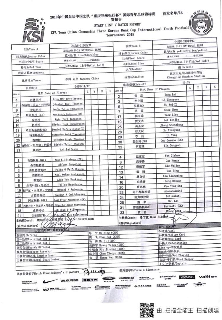 今晚,希丁克率领的U21国足迎来了重庆万州四国赛第二轮的比赛,对手是冰岛U21队。跟首轮1:0战胜泰国U21队的首发阵容相比,今晚比赛的首发阵容发生了很大的变化,只是保留了上场比赛出任右边后卫的童磊。