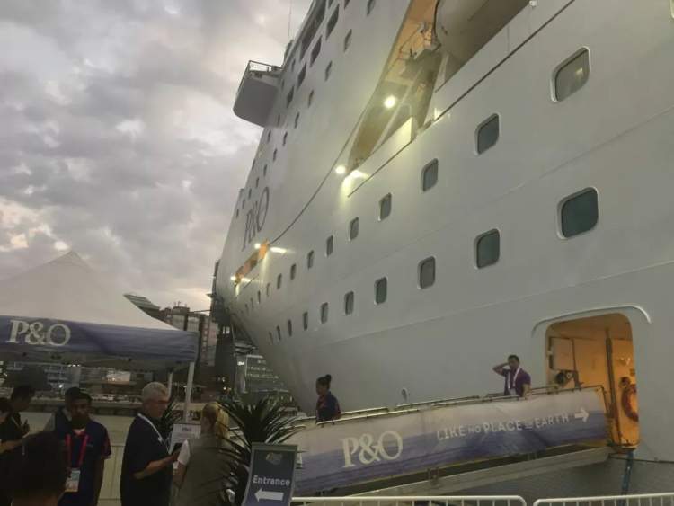 △17日上午的峰会就是在这条太平洋探索者号(Pacific Explorer)上举行的。(央视记者王萌萌拍摄)