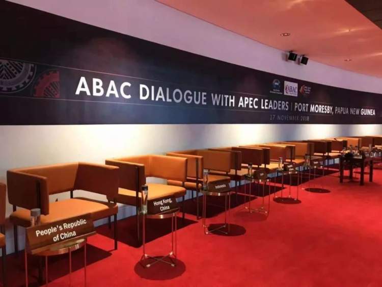 △这是对话会开始前的会场。会标上的“ABAC”是APEC工商咨询理事会的英文简称。(央视记者章猛拍摄)
