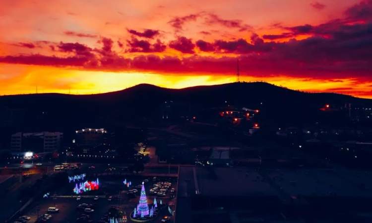 △晚霞如约而至,迎接各方贵宾。央视记者李晓周从中国代表团下榻酒店拍摄。