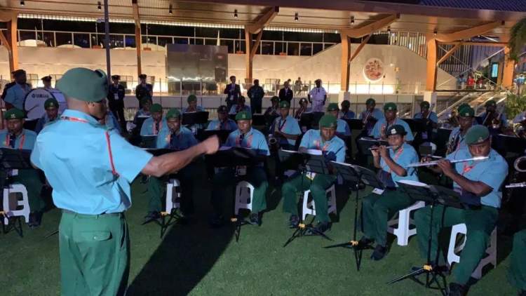 △晚宴前乐队演练(央视记者张淳拍摄)