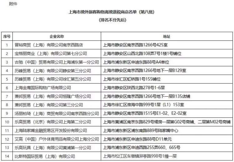 第八批境外旅客购物离境退税商店名单公布 周到君 2018-11-18 来源:周到上海 周到君从@上海税务处获悉,按照《国家税务总局关于发布〈境外旅客购物离境退税管理办法(试行)〉的公告》(国家税务总局公告 2015年第 41号)有关规定,上海市税务局日前公布了办理备案手续的退税商店名单(第八批)。 名单如下↓ 来源:周到上海 作者:周到君 赞一个 (0)