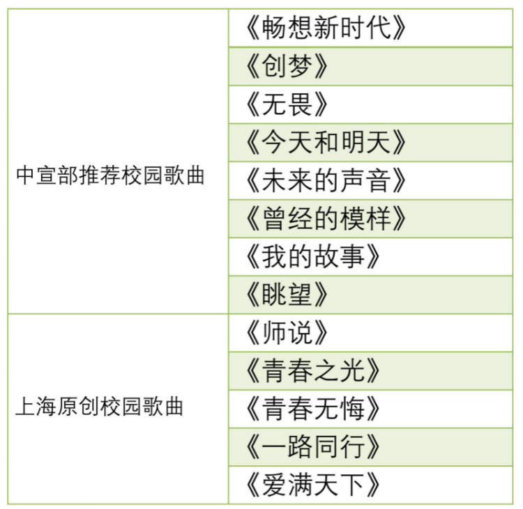 “牢记时代使命 唱响青春旋律”校园歌曲创作活动于2017年底启动,面向全国高等院校师生征集原创歌曲。第一批共选出《畅想新时代》《创梦》《今天和明天》《无畏》《眺望》《曾经的模样》《我的故事》《未来的声音》等8首优秀原创校园歌曲。
