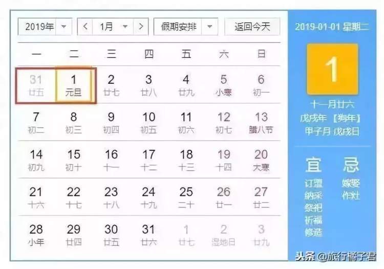 2019年元旦放假3天