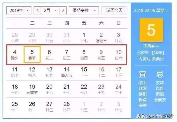 2019年春节是2月5日(星期二)