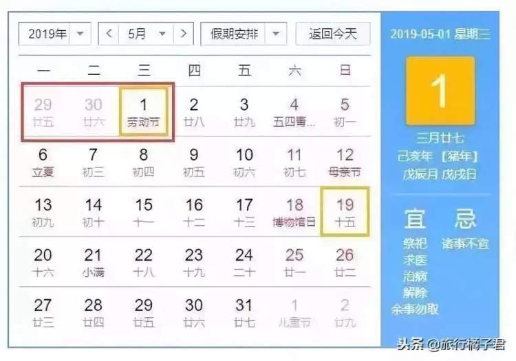 2019年4月29日至5月1日放假