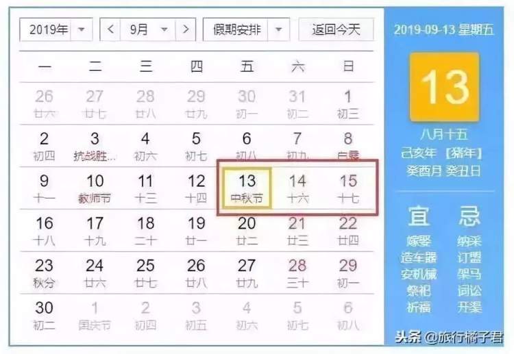 2019年中秋节放假安排: