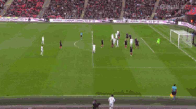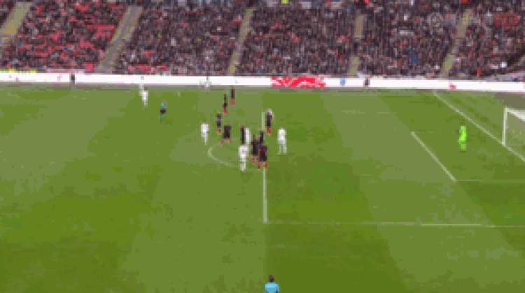 第85分钟,奇尔维尔左侧任意球传中,凯恩禁区中路铲射,球打在右门柱上弹入网内,英格兰2比1逆转击败克罗地亚。凯恩也成为在新温布利球场各项赛事打入30球的第一人。