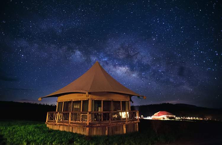 唐素君介绍说,康藤的所有账篷虽然看上去巨大,但完全可以24小时之内拆走。这种可拆卸的结构,是生态旅游最好的载体。其次是规模的限制,康藤所有的营地规模都会考虑到当地环境和生态的承载能力,否则一旦突破了这个承载饱和,不单单会影响游客的舒适度和体验感,对生态环境也会造成恶劣影响。如果遇到大的团队怎么办呢?康藤也有解决方法,分解到不同时段和不同居住地,一部分客人在山上,一部分客人在山下。