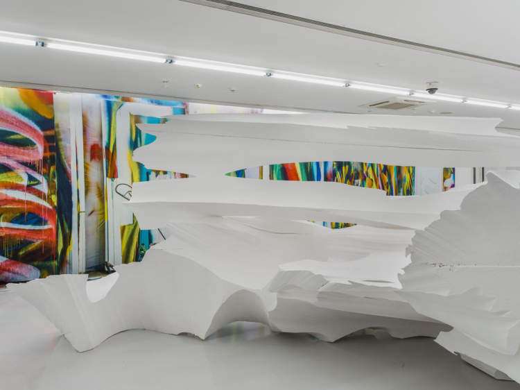 喷绘于不同结构和布料上的纹理图案,色彩多样,难以名状,让观众仿佛漫步于熟知世界的边缘,催人反思大都会本质上的变幻无常。