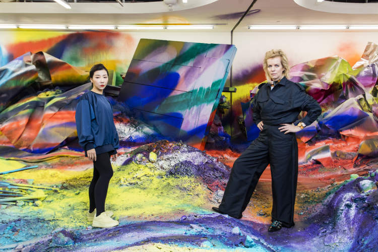 ▲艺术家卡塔琳娜·格罗斯(右)和《呢喃的泥土》策展人刘秀仪(左)