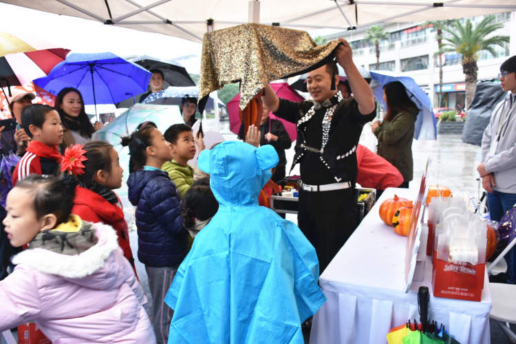 最受小朋友喜欢的魔术表演,在市集可以说是开挂了!为讨小朋友欢喜,魔术师的花式表演轮着来,一波波惊喜,让小可爱们欢腾不已。不少小朋友自告奋勇上台,和魔术师学艺,瞧,还真是有模有样呢!