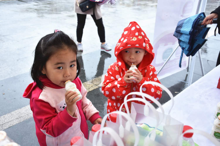 一人拿一瓶乳酸菌,看看谁喝得快?从小朋友的表情中,可以看得出这款名叫“界界乐”乳酸菌饮料味道不错哦!